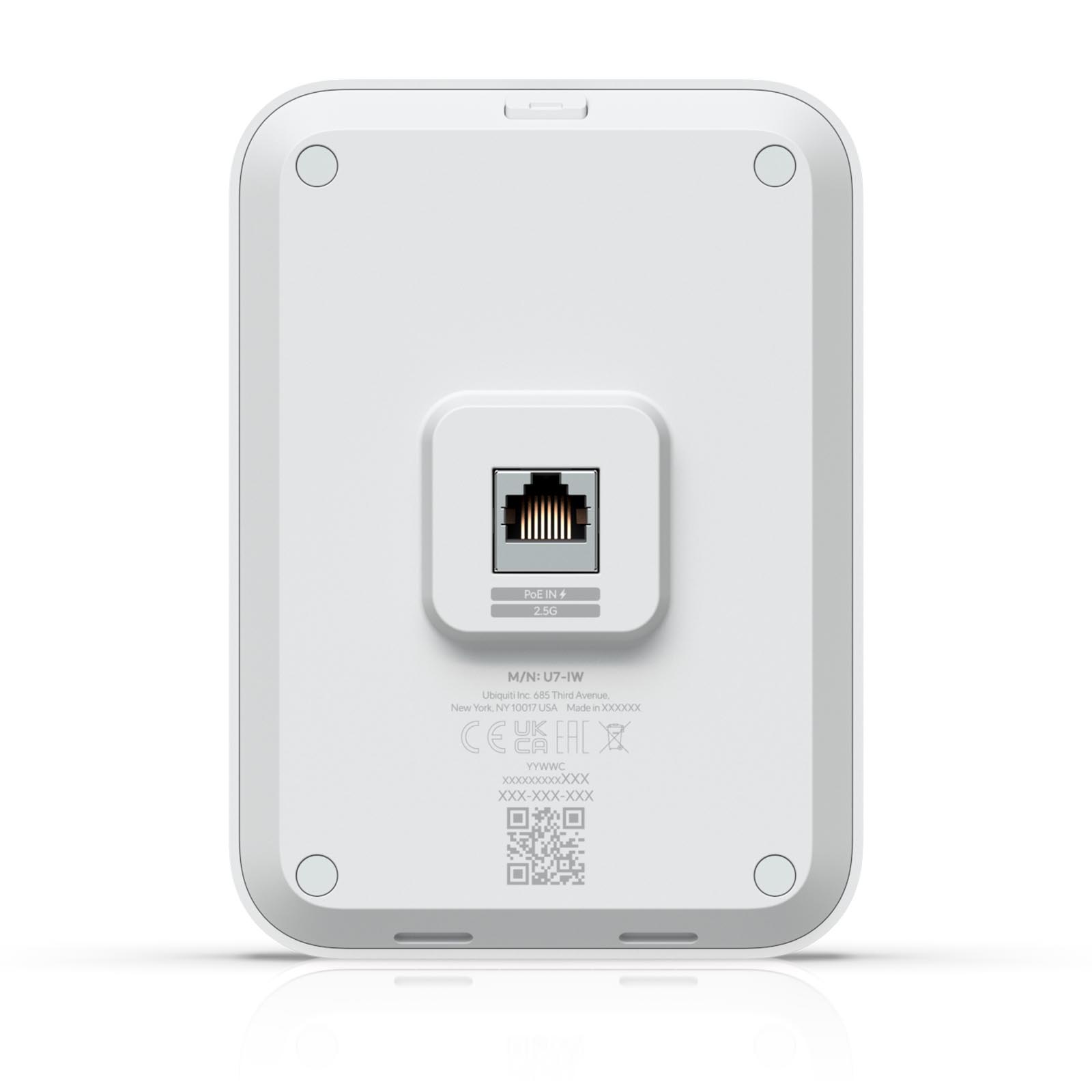 Ubiquiti U7 In-Wall posiada port uplink 2,5 GbE do szybkiej transmisji danych, zapewniając maksymalną przepustowość dla wymagających aplikacji. Dodatkowo zawiera dwa porty LAN 2,5 GbE skierowane do przodu, z czego jeden obsługuje wyjście PoE, gdy jest zasilany przez PoE+. Pozwala to na bezproblemową integrację z innymi urządzeniami obsługującymi PoE, zmniejszając potrzebę stosowania dodatkowych zasilaczy. Urządzenie jest zasilane przez PoE lub PoE+ (48 V, 0,5 A), przy czym PoE+ jest wymagane dla wyjścia PoE z jednym portem. Jego energooszczędna konstrukcja zapewnia maksymalną wydajność przy jednoczesnym utrzymaniu zużycia energii na poziomie zaledwie 13 W (z wyłączeniem wyjścia PoE).