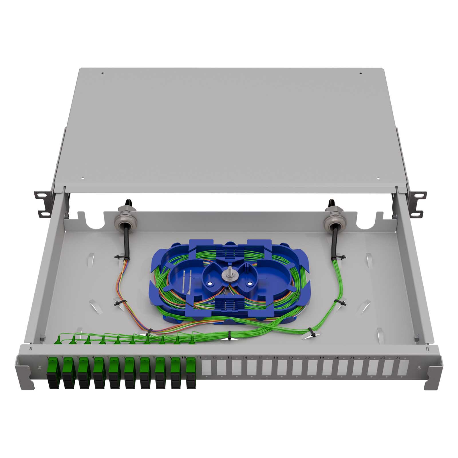Przełącznica światłowodowa 19" 1U 24xSC Duplex, wysuwana, szara