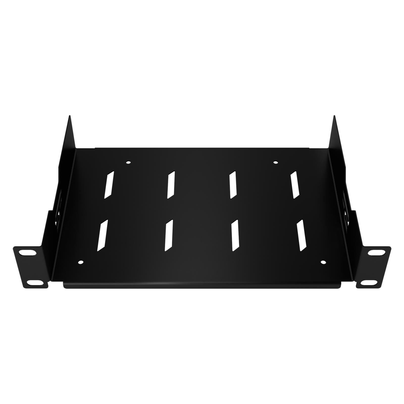 - Praktyczne otwory: Spód półki posiada otwory, które umożliwiają łatwe utwierdzenie lub zamocowanie urządzeń za pomocą opasek kablowych, zapewniając jednocześnie odpowiednią cyrkulację powietrza.