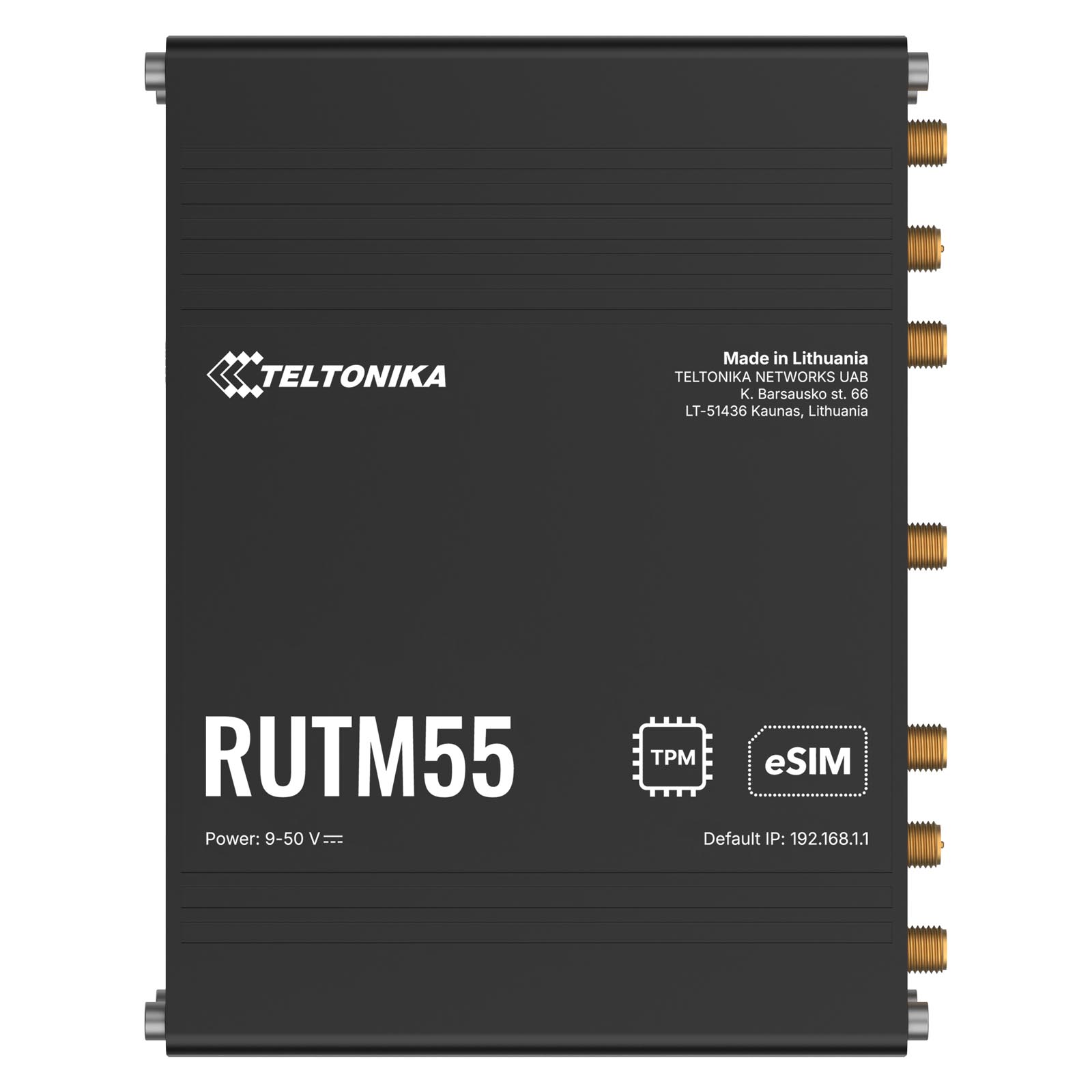 Teltonika RUTM55 to komórkowy router 5G obsługujący architektury SA i NSA 5G, Dual-SIM, eSIM, 4x porty Gigabit Ethernet, WIFI, GPS, szeregowe (RS232, RS485), wiele wejść/wyjść, wydajny procesor i oprogramowanie RUTOS do zaawansowanych rozwiązań sieciowych.