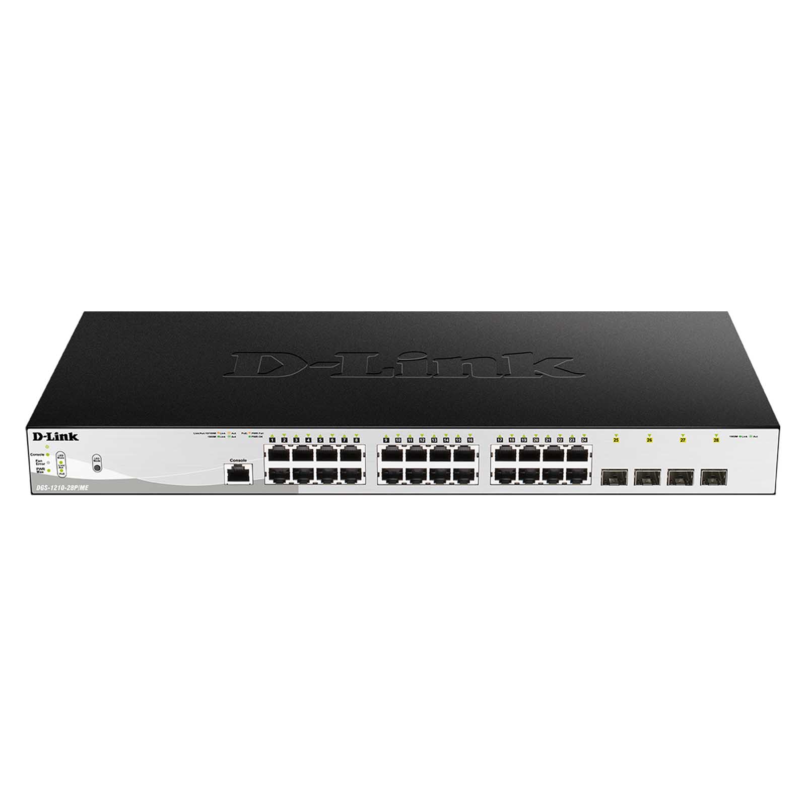 D-Link DGS-1210-28P/ME to zarządzalny 28-portowy gigabitowy przełącznik zarządzalny, wyposażony w 24x porty Gigabit Ethernet PoE i 4x sloty SFP, interfejsy zarządzania oraz rozbudowane funkcje warstwy drugiej.
