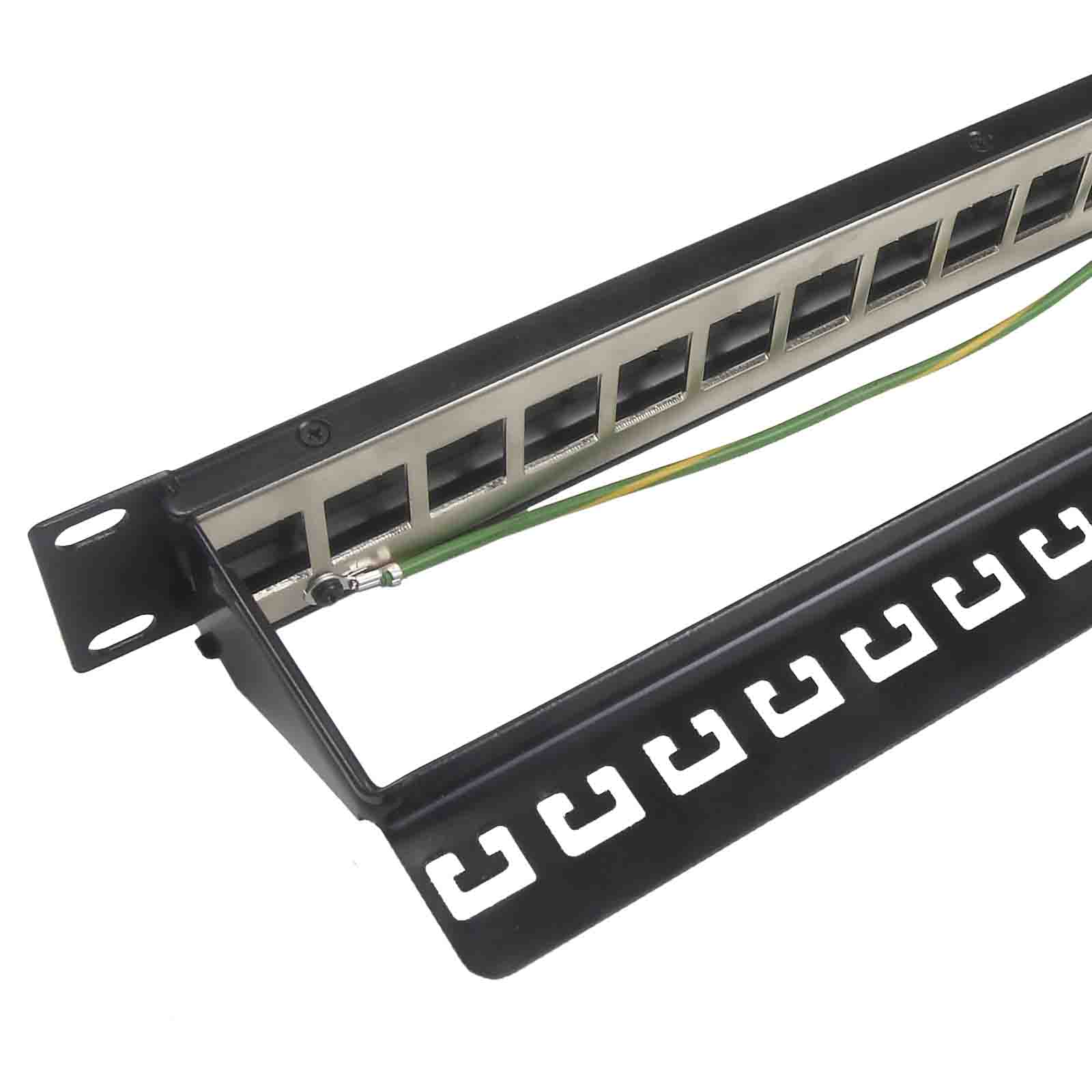 Patch panel uniwersalny nieobłożony 24 porty 1U czarny (SX24M-0-STP-BK-UNI)
