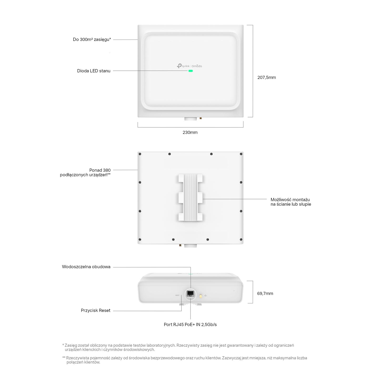 Możliwość montażu na słupie/ścianie (zestaw montażowy znajduje się w zestawie) |