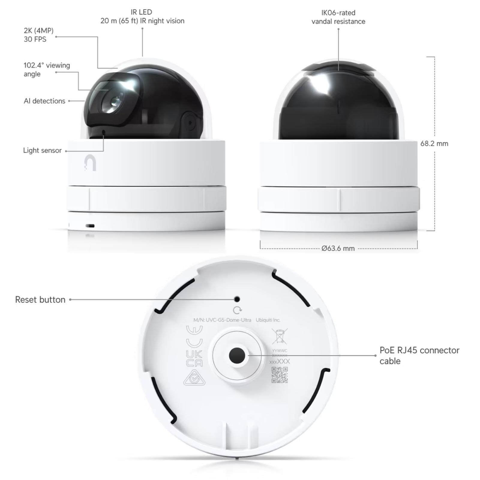 Ubiquiti G5 Dome Ultra to dyskretna i bogata w funkcje kamera bezpieczeństwa zaprojektowana specjalnie do dyskretnego monitoringu wnętrz. Dzięki ultra kompaktowej konstrukcji kamera Ubiquiti G5 Dome Ultra dyskretnie integruje się z każdym wnętrzem, dzięki czemu idealnie nadaje się do domów, biur, sklepów i innych pomieszczeń. Kamera G5 Dome Ultra zapewnia zaawansowane funkcje bezpieczeństwa w dyskretnej obudowie, zapewniając spokój ducha bez uszczerbku dla estetyki.