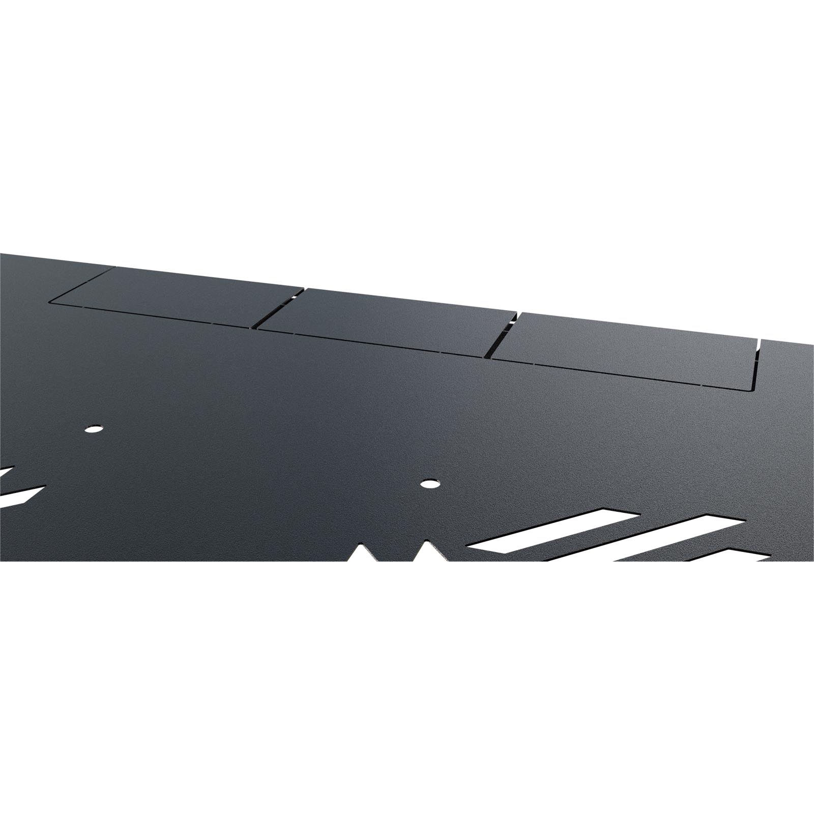 Szafa wykonana jest z blachy, która gwarantuje sztywność, a jednocześnie jest na tyle lekka, że jedna osoba może przeprowadzić instalację. Celowe usunięcie tylnej ściany umożliwia wygodną modernizację oraz zapewnia łatwy dostęp do okablowania wychodzącego ze ściany. Liczne otwory w szynach RACK pozwalają na łatwe przeprowadzenie okablowania. Dzięki swojej kompaktowej szerokości wynoszącej zaledwie 520 mm, szafa idealnie nadaje się do miejsc o ograniczonej przestrzeni, pozostając w pełni funkcjonalną.