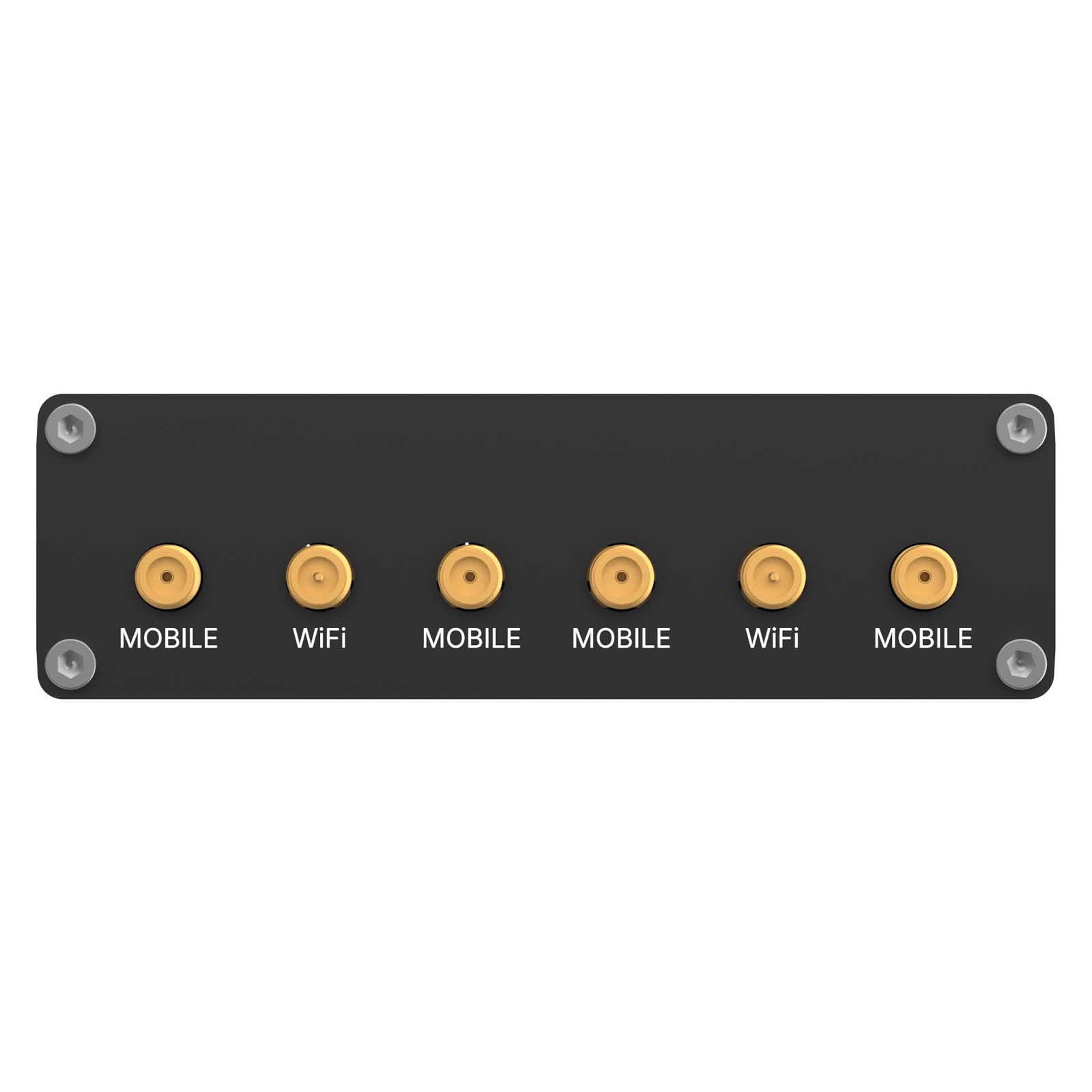 - Antennas: 4 x SMA for Mobile, 2 x RP-SMA for Wi-Fi