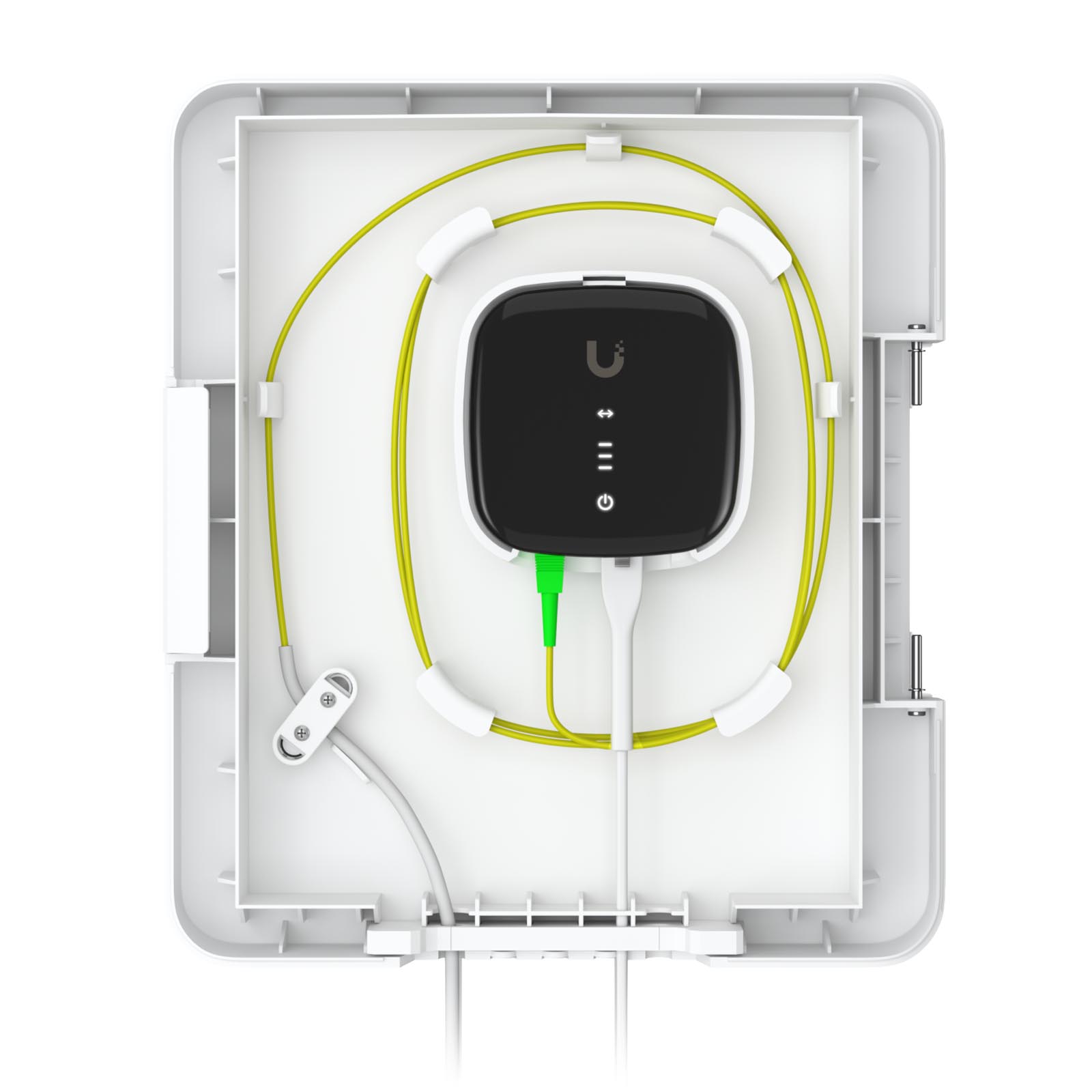 Wykonana z poliwęglanu odpornego na promieniowanie UV i innych wysokiej jakości materiałów odpowiednich do użytku na zewnątrz, skrzynka terminala UFiber została skonstruowana tak, aby wytrzymać niekorzystne warunki środowiskowe, zapewniając długotrwałą wydajność w różnych klimatach. Obudowa o stopniu ochrony IPX5 z odporną na warunki atmosferyczne obudową została zaprojektowana z naciskiem na trwałość i odporność na promieniowanie UV, wilgoć i wahania temperatury, dzięki czemu idealnie nadaje się do instalacji zarówno w środowiskach mieszkalnych, jak i komercyjnych, gdzie narażenie na działanie czynników atmosferycznych stanowi problem.