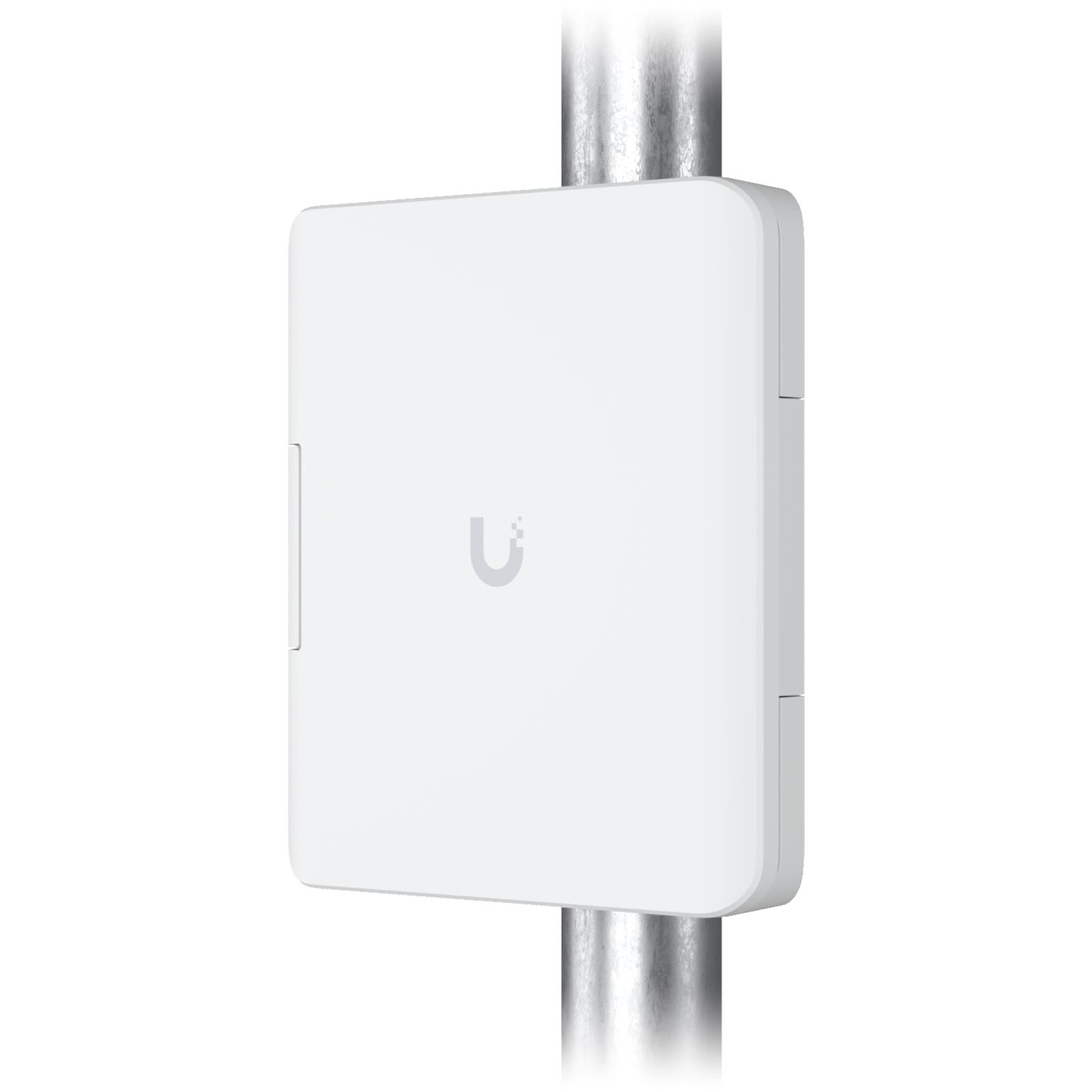 Wytrzymała skrzynka przyłączeniowa do użytku na zewnątrz może być zamontowana na ścianie lub maszcie i chroni urządzenia UFiber (