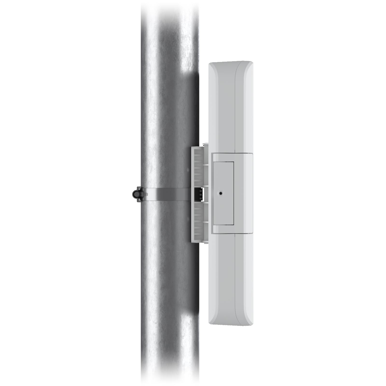 UF-Loco i UF-AE) przed niekorzystnymi warunkami pogodowymi, dzięki czemu mogą one działać w każdych warunkach. Ta wytrzymała obudowa ma konstrukcję z zamkiem śrubowym i jest dostarczana z zestawem do montażu na maszcie o średnicy od 35 do 60 mm, dzięki czemu można ją umieścić w dowolnym miejscu, gdzie potrzebna jest ochrona IPX5 w instalacji UFiber.