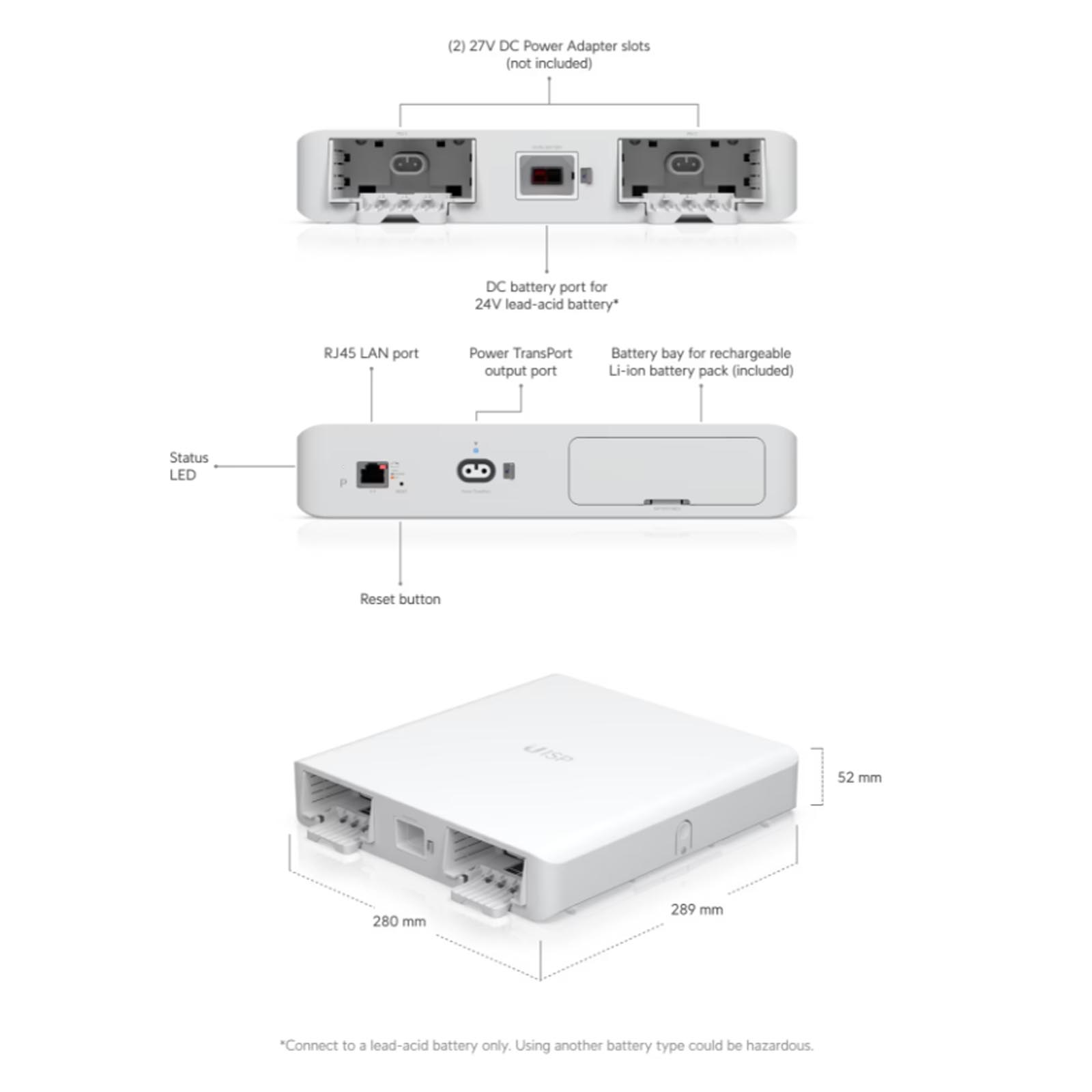 1 lub 2 prostowniki 27 V DC, 4,4 A (UISP 120W Power TransPort Adapter (UACC-Adapter-PT-120W) - należy zakupić osobno) |