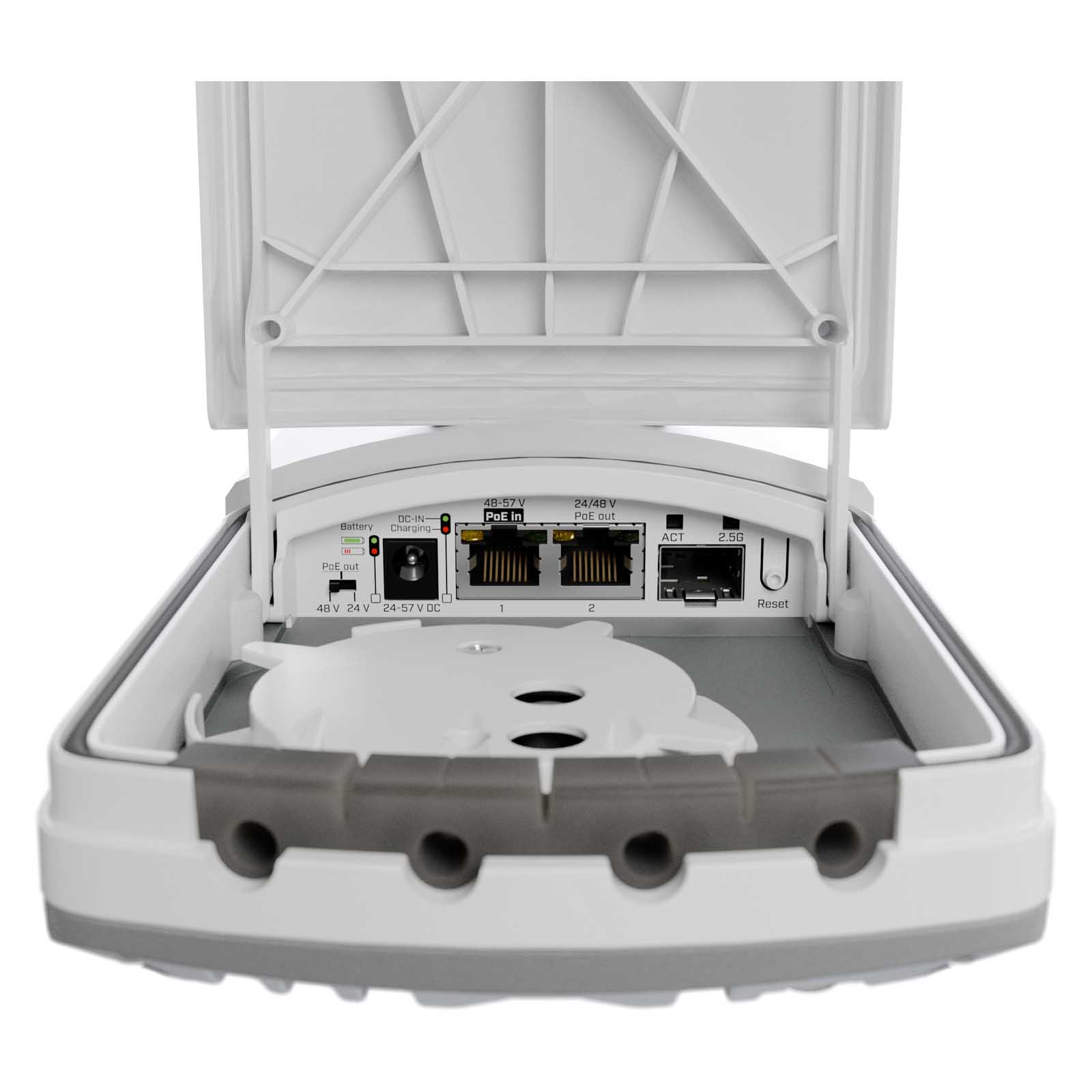 To, co wyróżnia MikroTik FTC21-ups, to sposób działania w przypadku niestabilnego zasilania. Wewnątrz znajduje się para baterii litowo-jonowych NCA 18650. Nie służą one do zasilania sieci przez całą noc, ale do przetrwania krótkich przerw w dostawie prądu, spadków napięcia i momentów, w których wszystko prawie się zawiesza. Utrzymują one połączenie, gdy zasilanie jest niestabilne, zapobiegając niepotrzebnej renegocjacji urządzeń.
