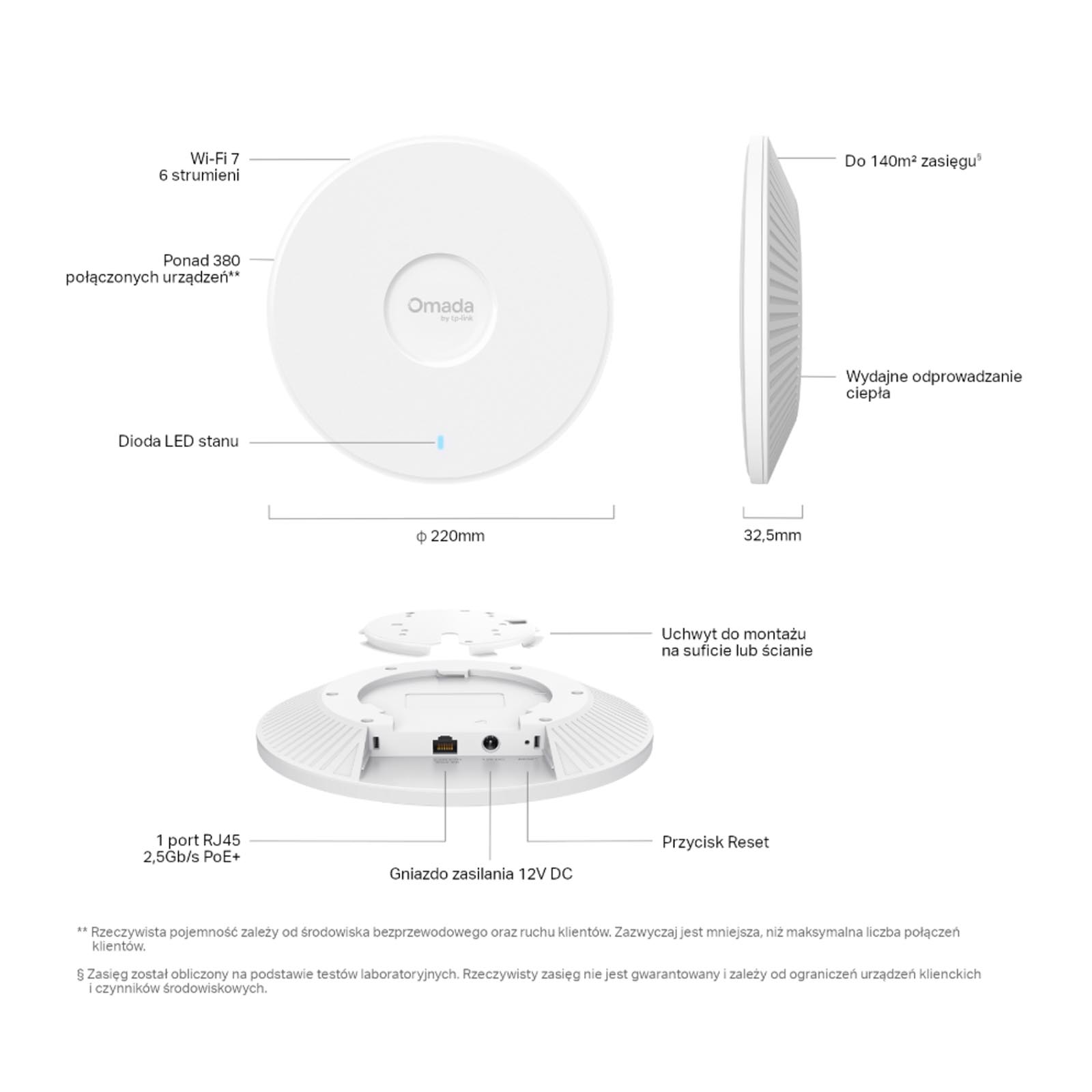 • MLO • 4K-QAM • MU-MIMO • Pasmo 320 MHz • Mesh • Płynny Roaming(802.11k/v/r) • Kolorowanie BBS • OFDMA • Równoważenie pasma • Sterowanie pasmem • Beamforming • Airtime Fairness • Multi SSID: 24 (8 na każde pasmo) • Harmonogram sieci bezprzewodowej • Harmonogram restartów • QoS(WMM) • Ograniczenie prędkości • Statyczne IP/Dynamiczne IP • RADIUS Accounting • Uwierzytelnianie MAC |
