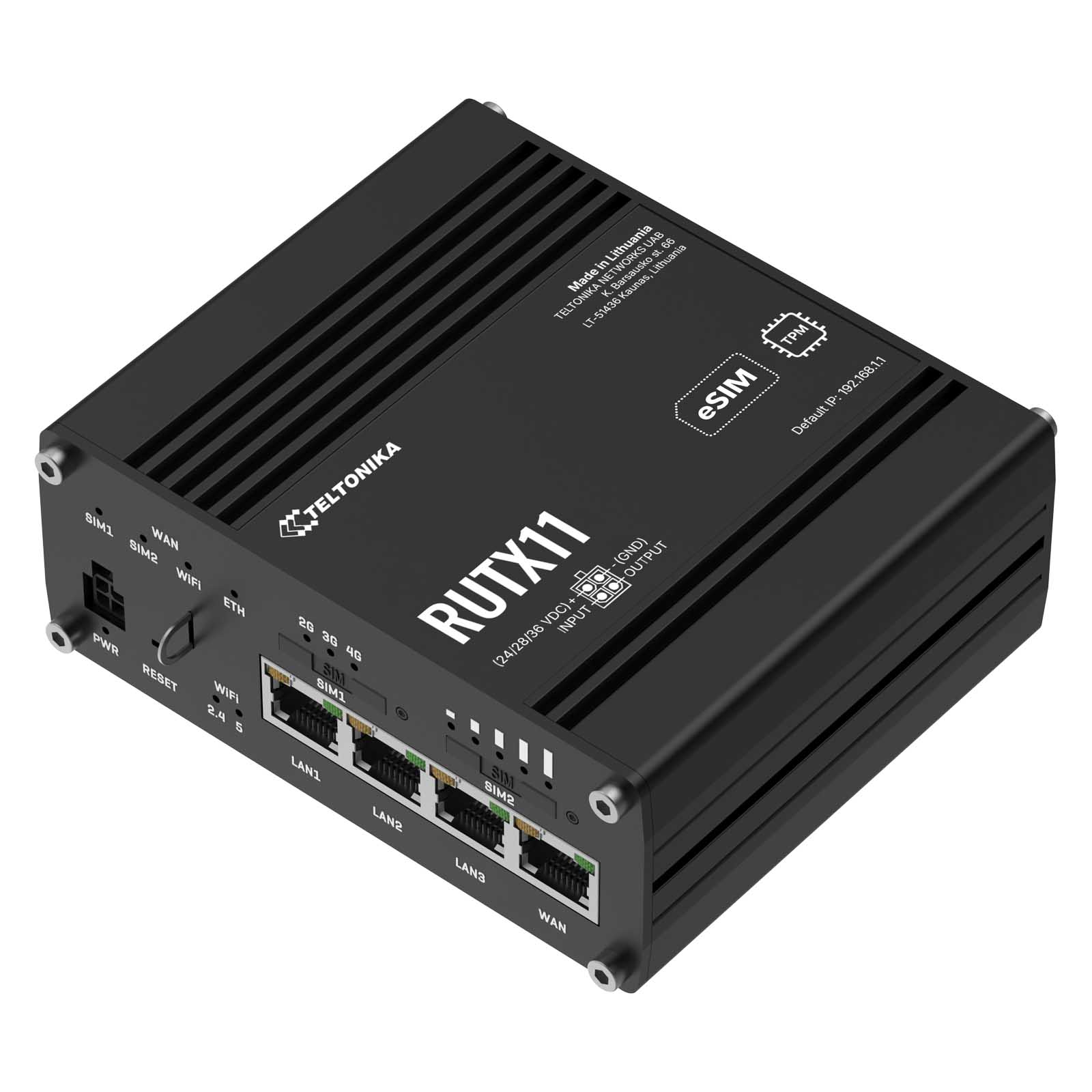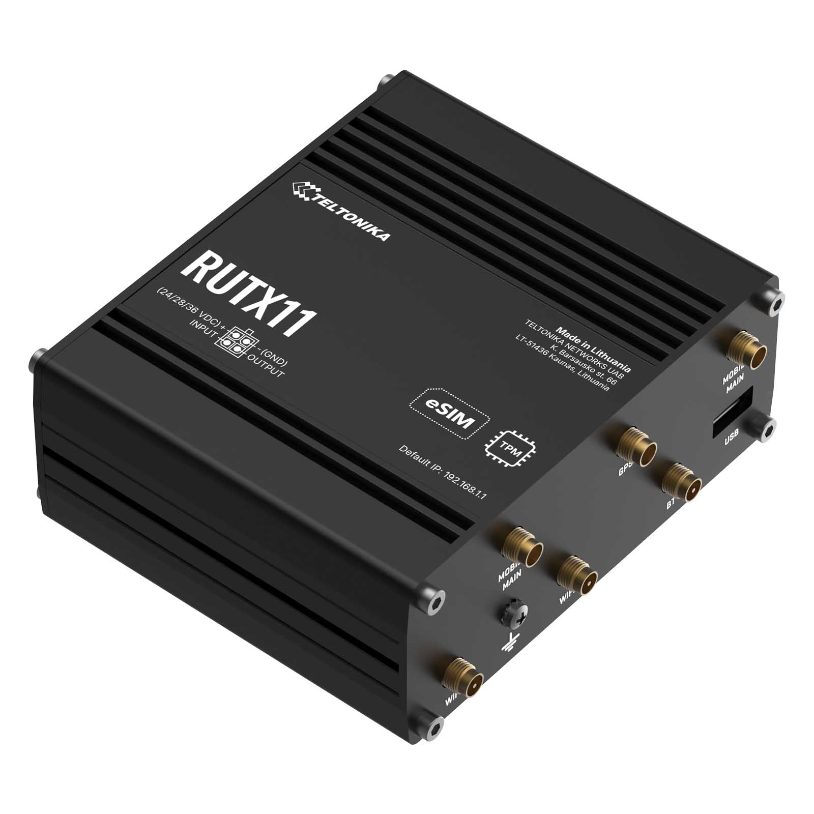 - Input voltage range: 9 - 50 VDC, reverse polarity protection, voltage surge/transient protection, 24 - 36 VDC for railway version of the code RUTX11 020G00