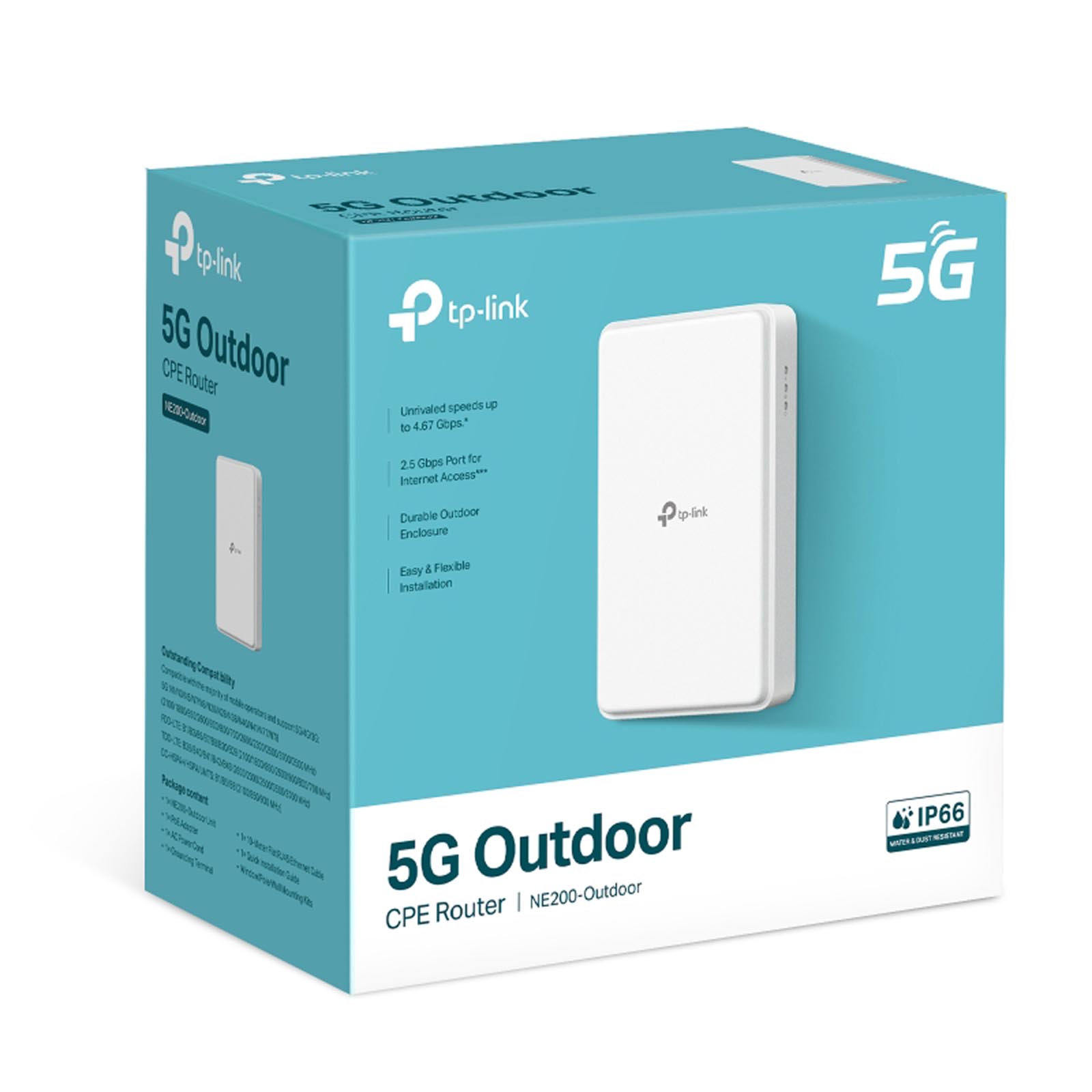 Zewnętrzny router 5G NE200-Outdoor 10-metrowy kabel Ethernet RJ45 Adapter PoE Przewód zasilający AC Zacisk uziemiający Skrócona instrukcja instalacji Zestawy do montażu na oknie/słupie/ścianie |