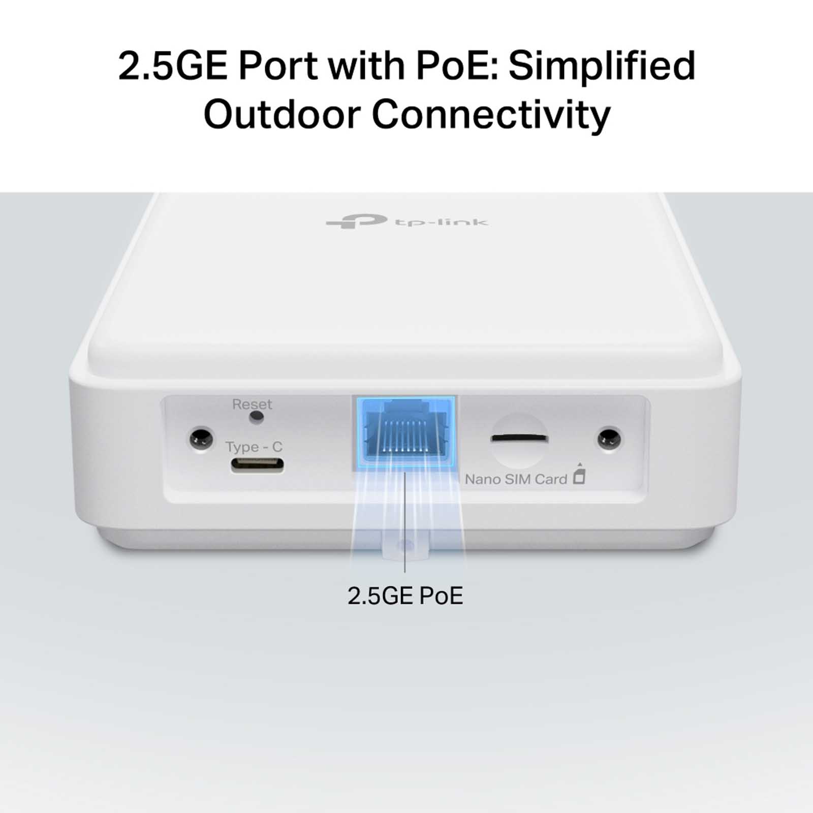1 port PoE/LAN 2,5 Gb/s 1 gniazdo karty Nano SIM 1 port typu C (tylko do debugowania) |