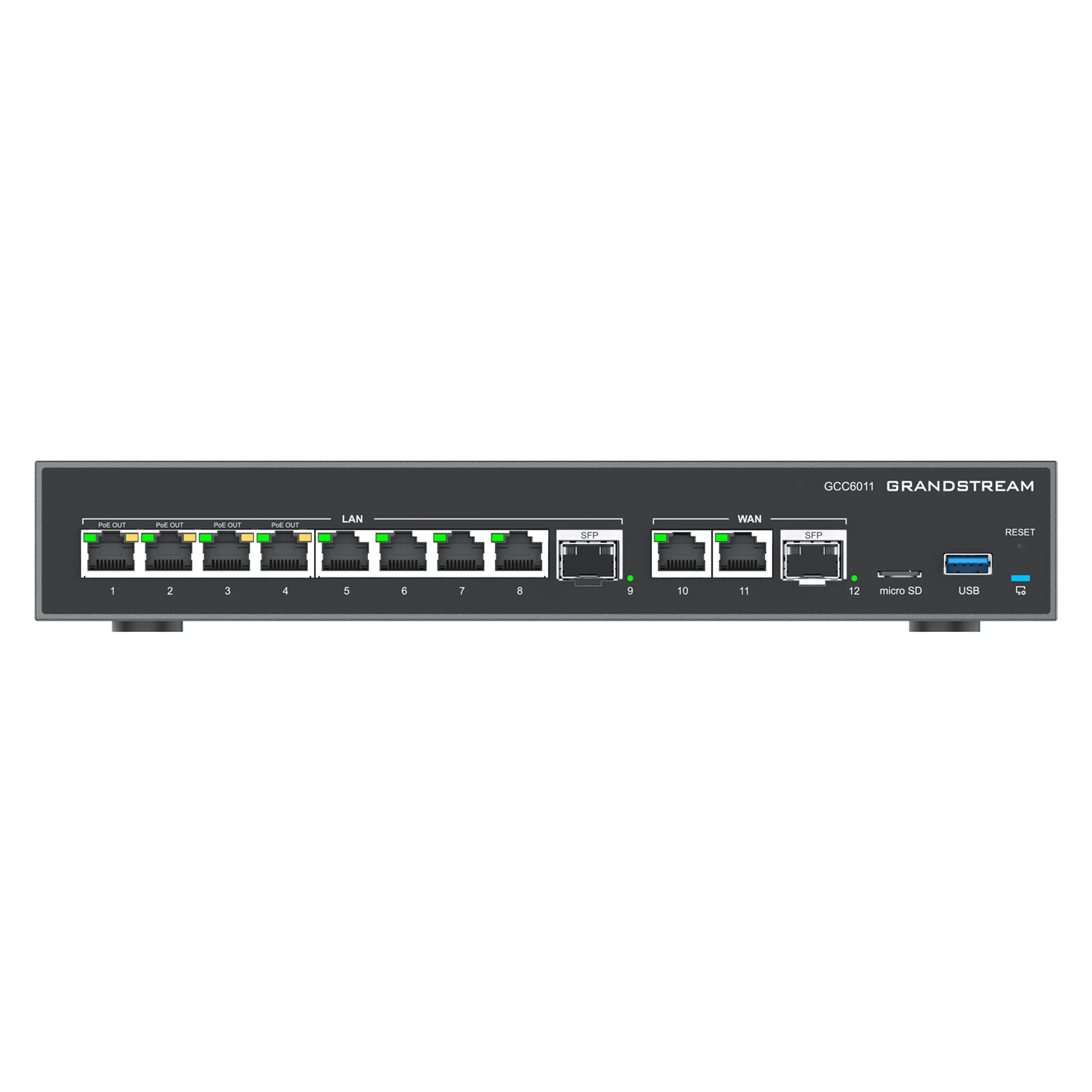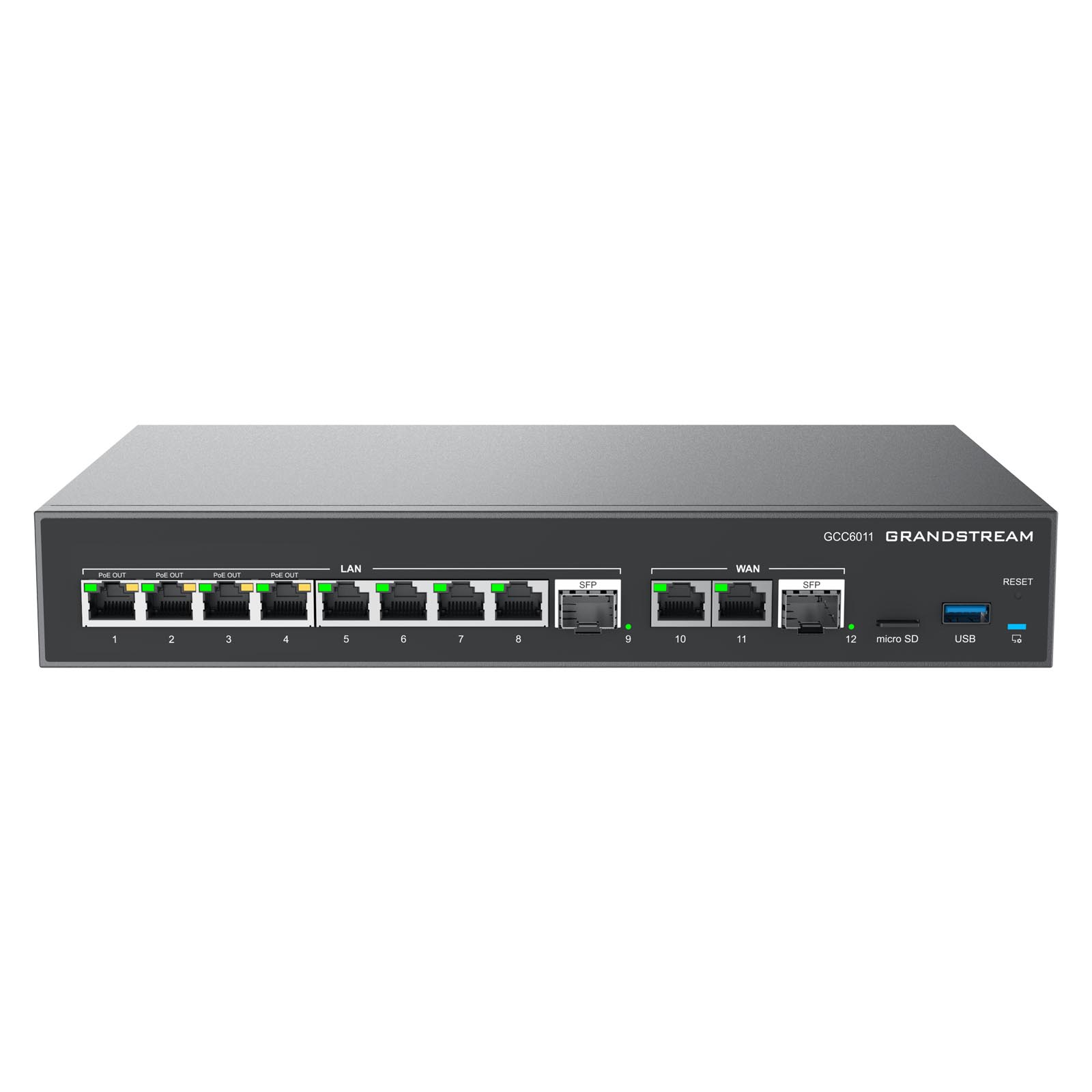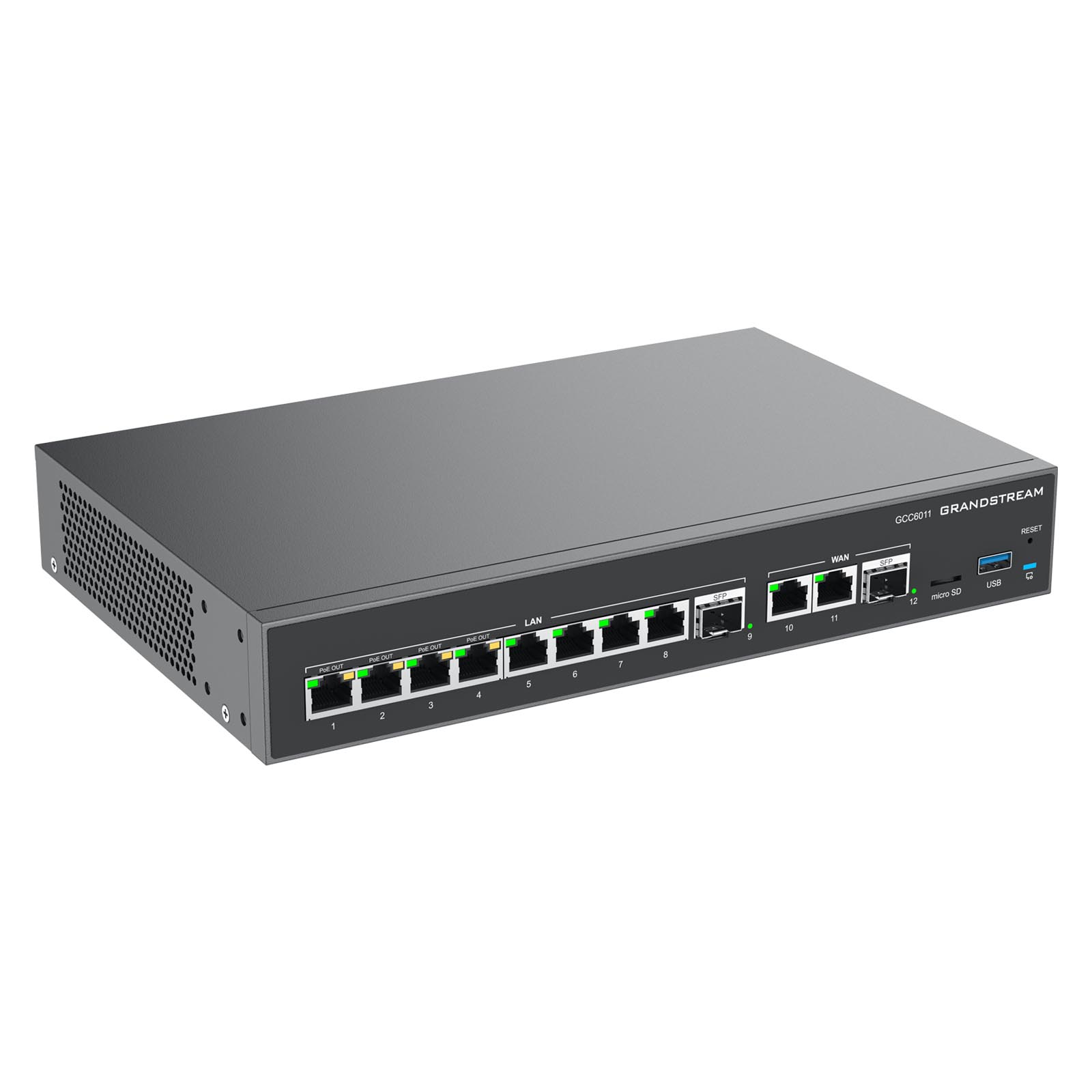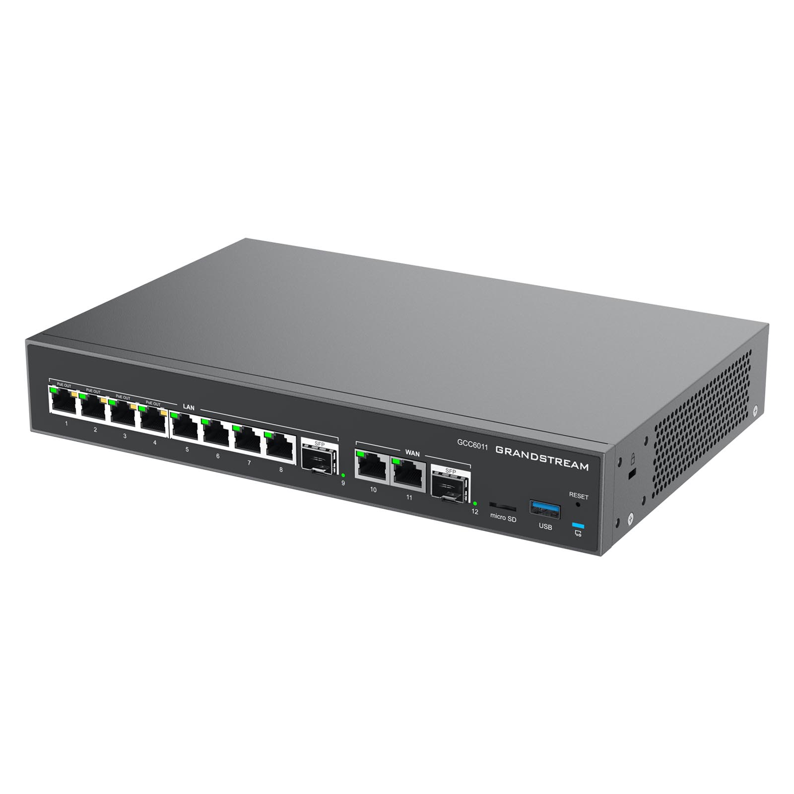 Grandstream GCC6011 to rozwiązanie konwergencji sieci UC+, łącząc funkcjonalność 4 produktów, tworząc kompleksowe rozwiązanie obejmujące router VPN, zaporę sieciową nowej generacji, centralę IP PBX oraz przełącznik sieciowy.