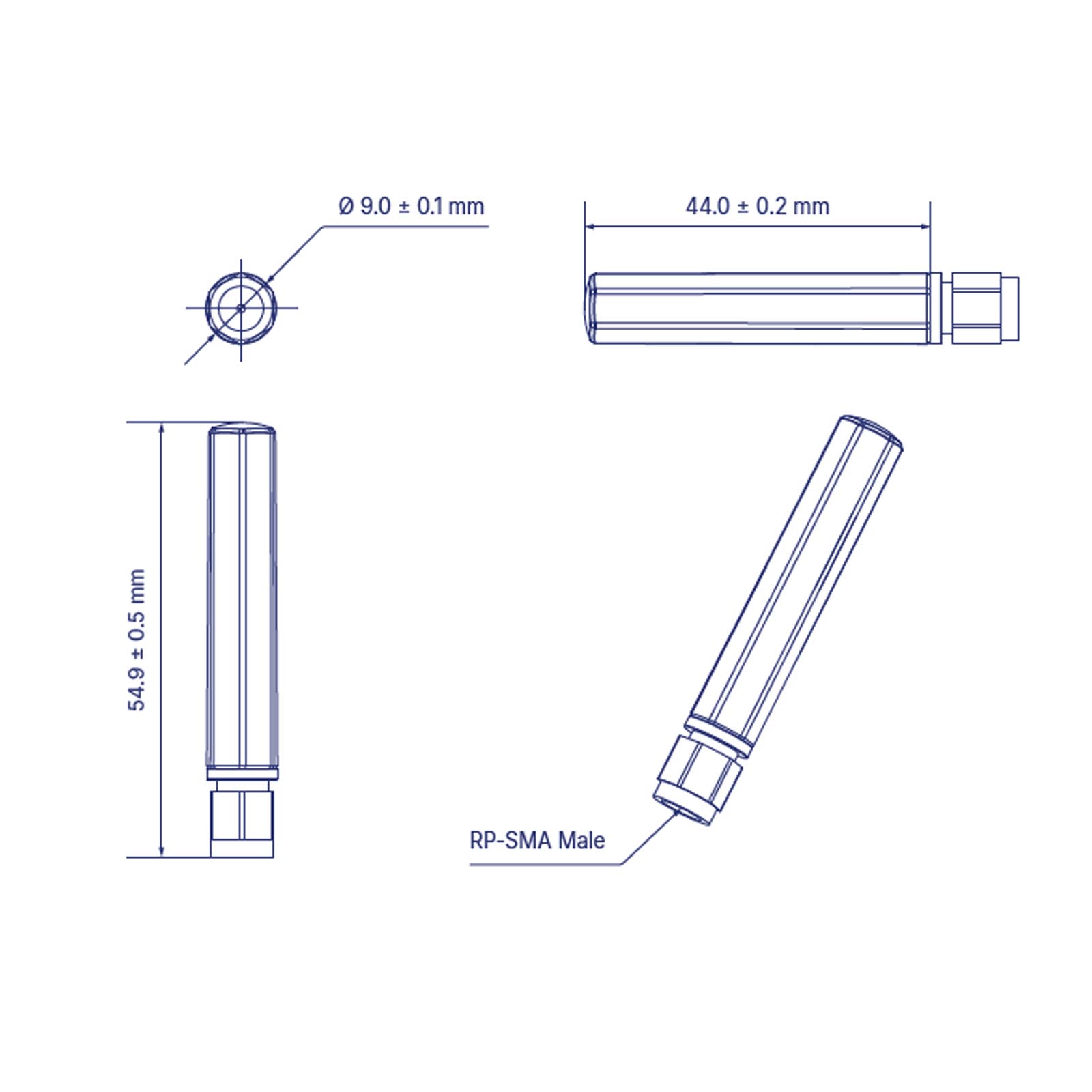 PR1CRF43 to prosta kompaktowa antena WiFi pracująca w zakresie częstotliwości 2400-2500 MHz, 5150-5850 MHz oraz 5925-7125 MHz z zyskiem 4.3 dBi. PR1CRF43 ma polaryzację liniową i impedancję wejściową 50 Ohm. Antena ma długość 54 mm i jest wyposażona w proste złącze męskie SMA.