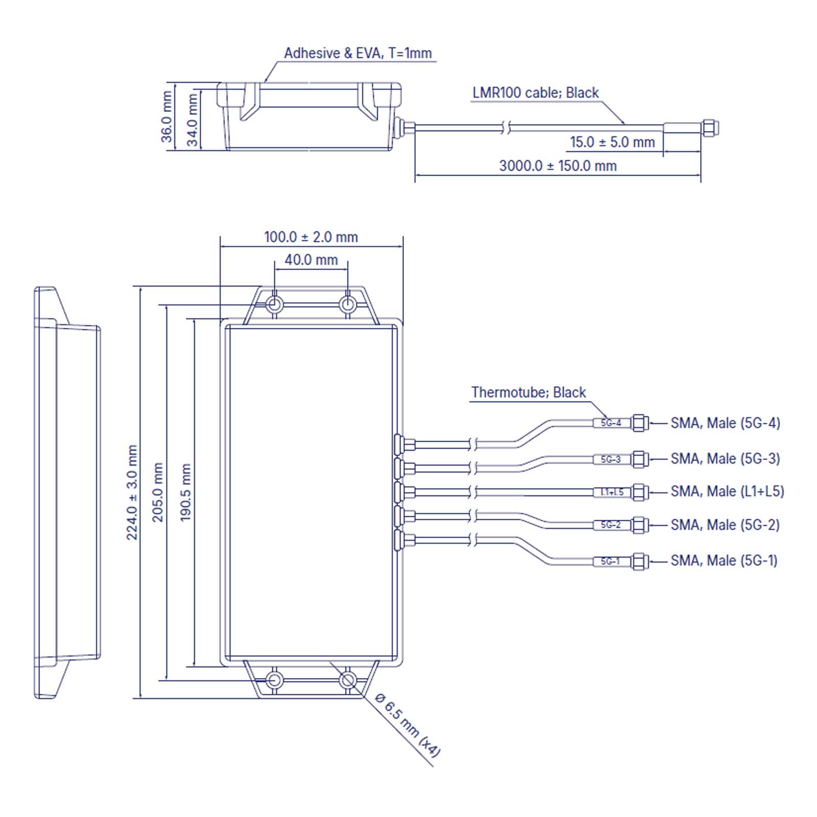Teltonika PR1KCN40 antena 5G combo mobile/GNSS MIMO, IP67, SMA 3m o zysku 4 dBi (LTE), 2 dBi (GPS) oraz z przewodem długości 3m. Antena 5G combo MIMO mobile/GNSS składa się z 4 zintegrowanych anten LTE oraz 1x anteny GNSS.