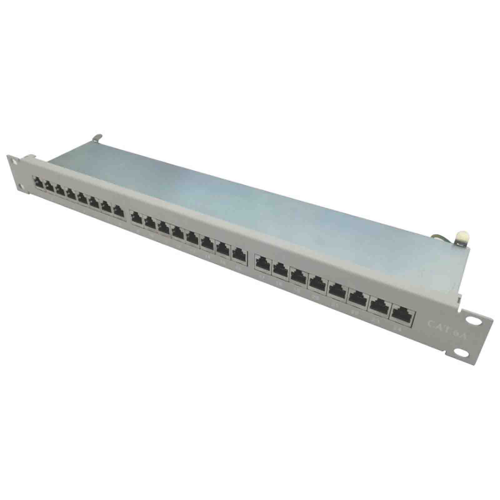 Patch panel STP 19" kat.6a, 24 porty z listwą, szary