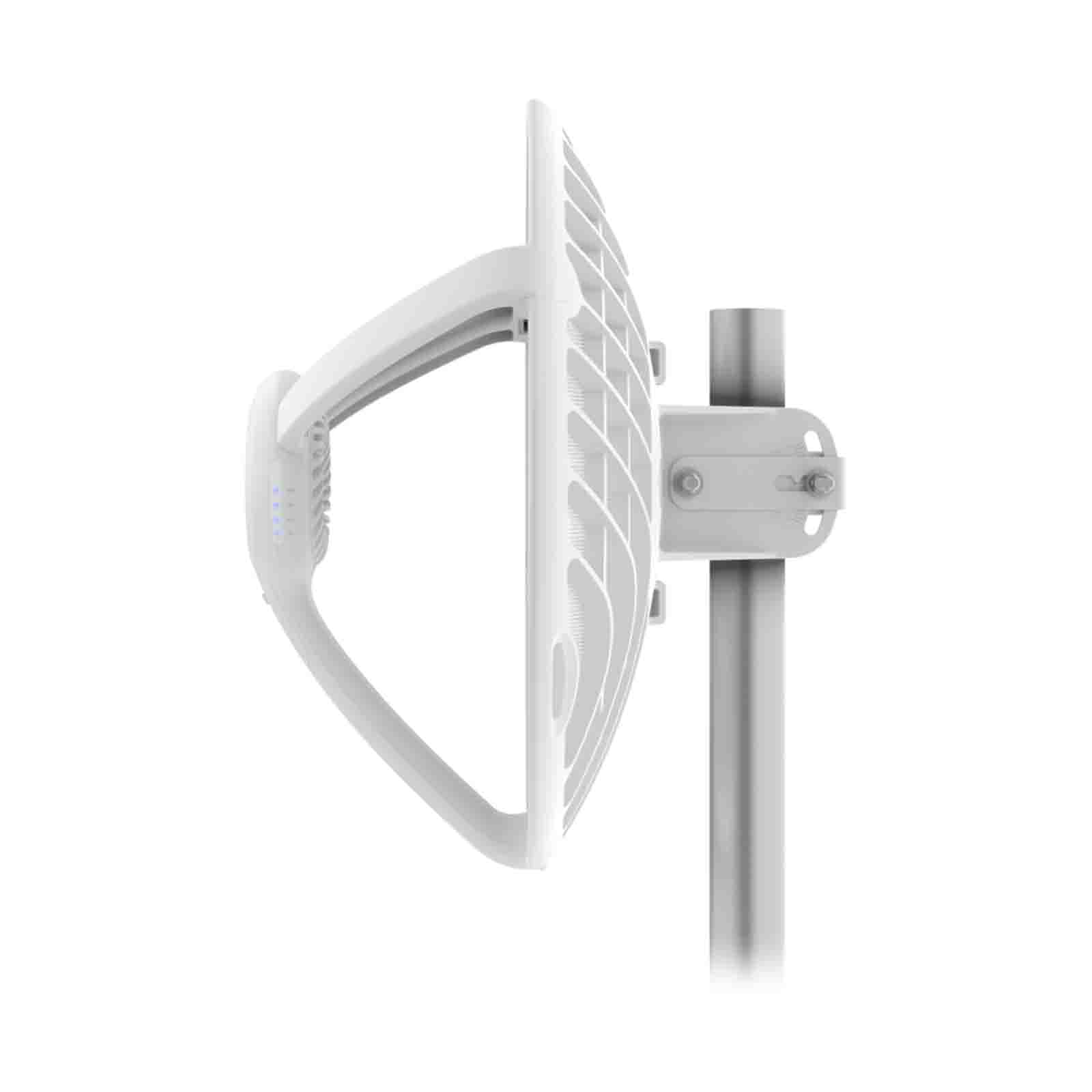 Praca w paśmie 5 GHz, standard AC, przepustowość 450Mb/s, zasięg 25km, 1x port Gigabit Ethernet, zintegrowana antena o średnicy 40 cm i zysku 25 dBi