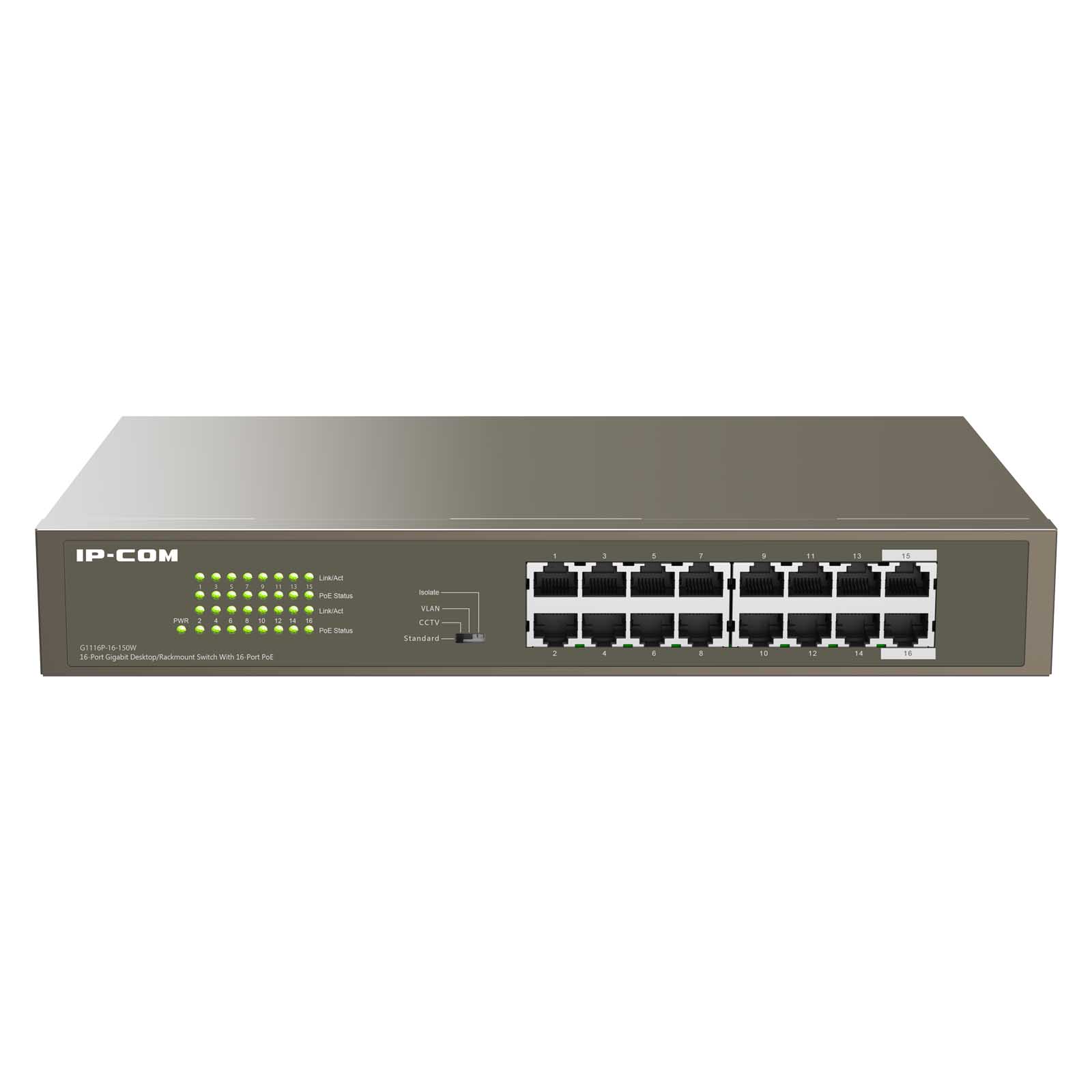 IP-COM G1116P-16-150W to niezarządzalny przełącznik PoE, wyposażony w 16x portów Gigabit Ethernet 10/100/1000 Mb/s PoE.
